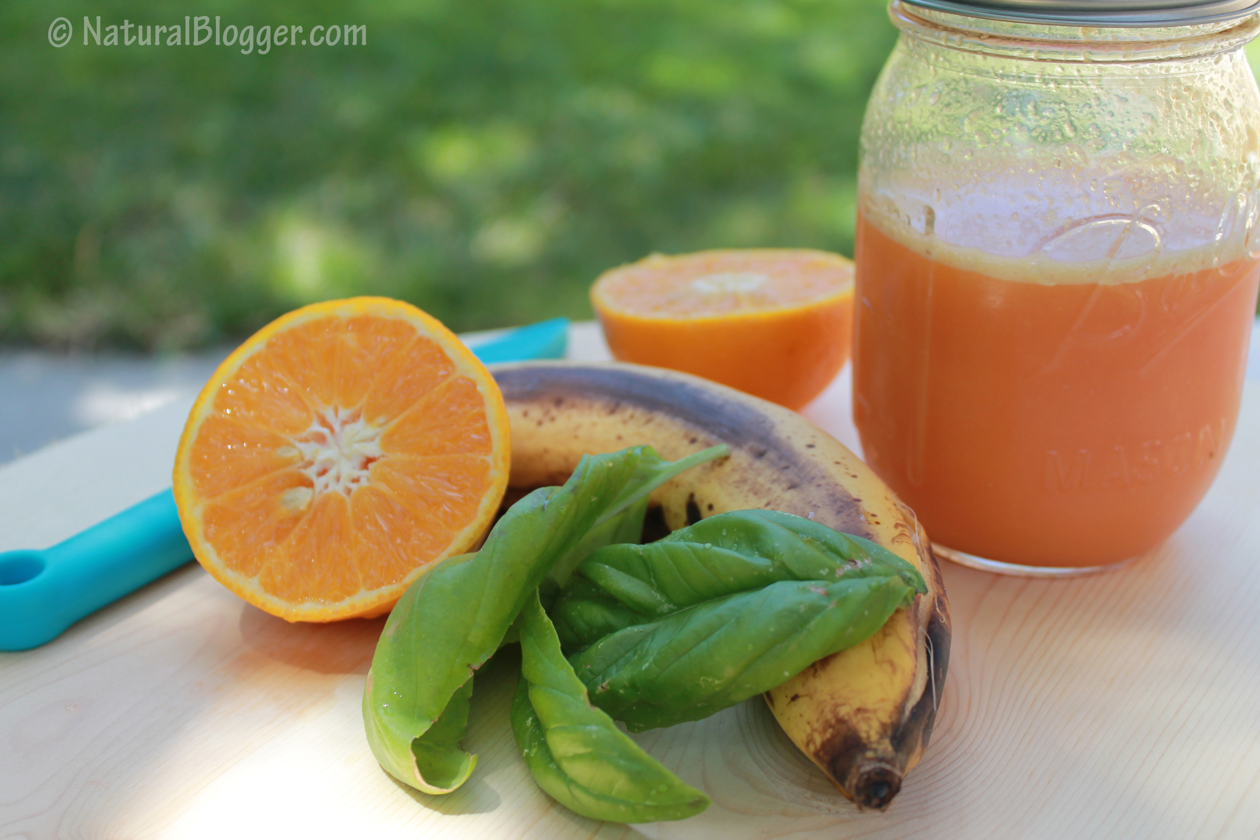 Note: You can totally skip banana and blend just orange juice with basil. That version is great as a juice for hot summer days.